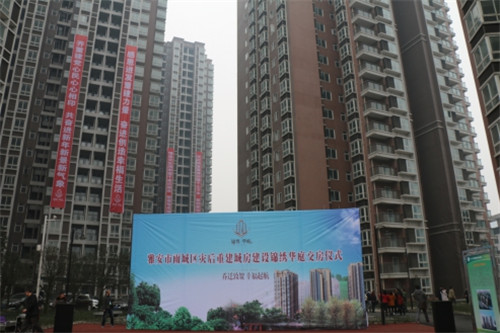 沙灣A區(qū)安居房(錦繡華庭)位于雨城區(qū)沙灣片區(qū),項目投資5.89億元,占地面積39.5畝。項目總建筑面積156621.17㎡,共8棟,3-26層電梯公寓,910套,項目注重完善配套設施,配齊社區(qū)物管,社區(qū)活動中心及便民超市,居民將在領取鑰匙后陸續(xù)喜遷新居。作為災后重建城房重建工程,交房儀式將標志圓滿完成該項目標任務,圓了群眾安居夢,為居民創(chuàng)造一個安全、舒適的居住環(huán)境,同時預示著城房重建再上新臺階。