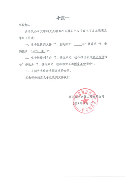 大興順路社區(qū)服務(wù)中心土方工程競(jìng)爭(zhēng)性談判公告補(bǔ)遺