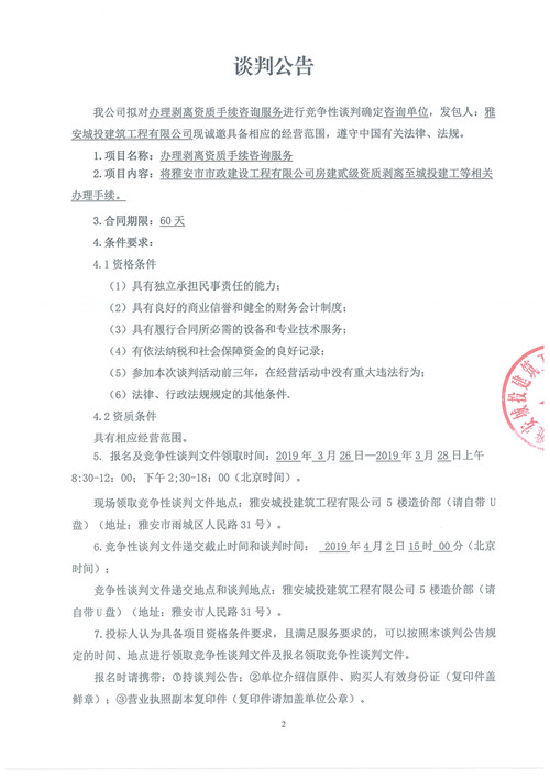 辦理剝離資質手續(xù)咨詢服務競爭性談判公告