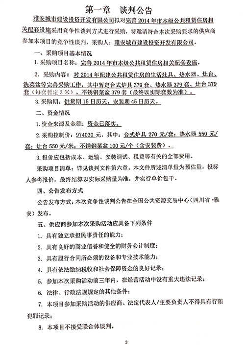 完善2014年市本級(jí)公共租賃住房相關(guān)配套設(shè)施的競爭性談判公告