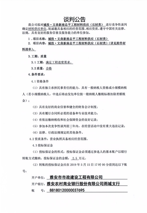 城投·文曲新座總平工程材料供應(yīng)(石材類)競爭性談判公告