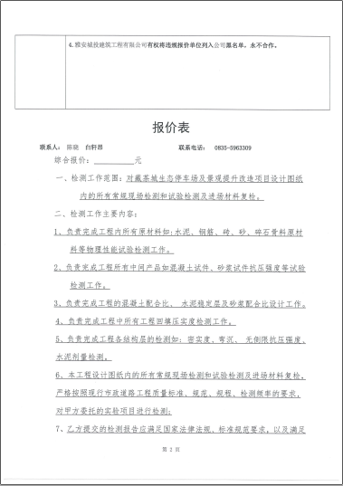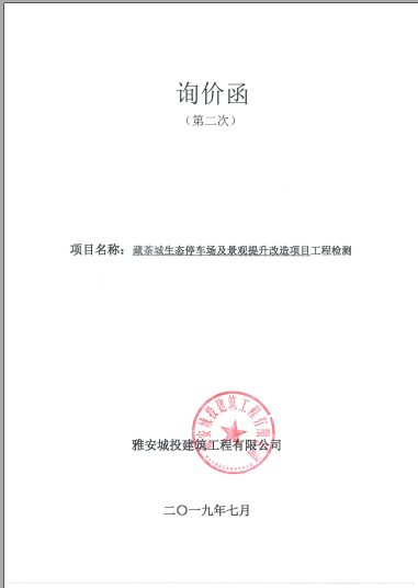 藏茶城生態(tài)停車場(chǎng)及景觀提升改造項(xiàng)目工程檢測(cè)詢價(jià)函