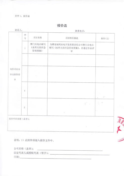 詢(xún)價(jià)函(《水庫(kù)大壩應(yīng)急管理預(yù)案》)