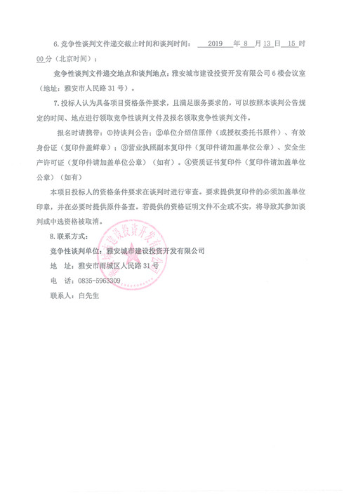 雅安市隴西河景觀天橋工程檢測競爭性談判公告(第三次)