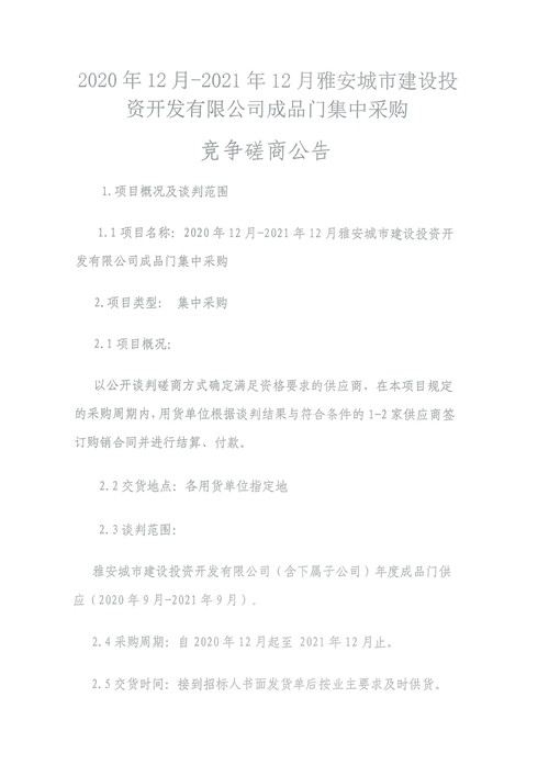 2020年12月-2021年12月雅安城市建設投資開發(fā)有限公司成品門集中采購競爭磋商公告