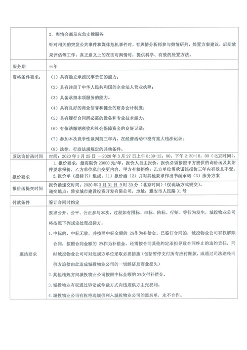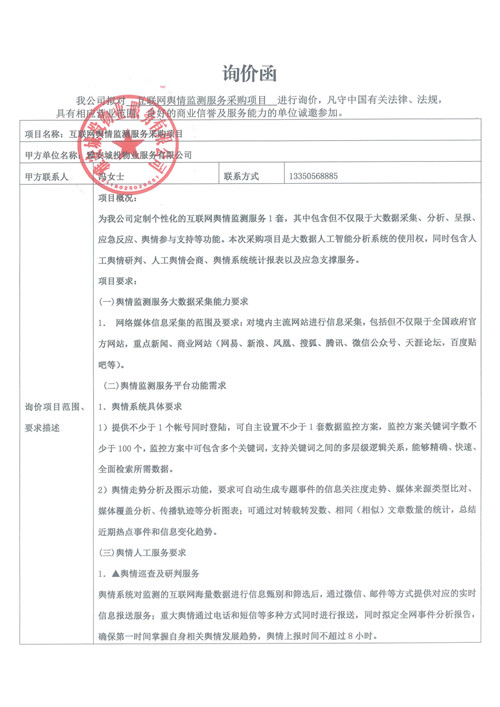 城投物業(yè)公司互聯(lián)網(wǎng)輿情監(jiān)測服務采購項目詢價函