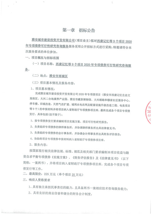 西康記憶等9個(gè)項(xiàng)目2020年專(zhuān)項(xiàng)債券可行性研究咨詢服務(wù)招標(biāo)公告
