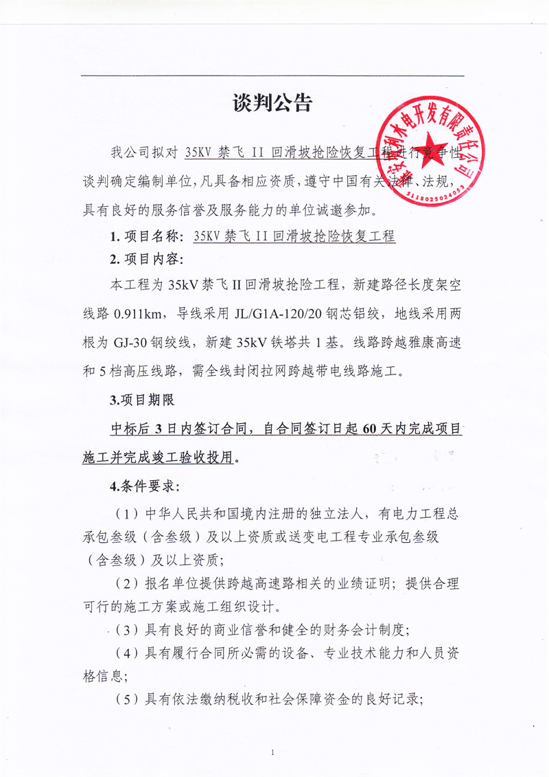 城利水電公司35kv禁飛II回滑坡?lián)岆U(xiǎn)恢復(fù)工程競爭性談判
