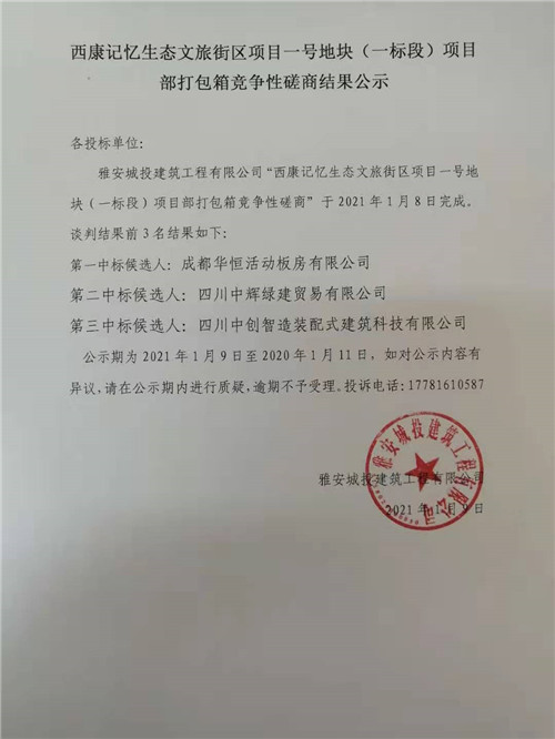 西康記憶生態(tài)文旅街區(qū)項目一號地塊(一標段)項目部打包箱競爭性磋商結果公示