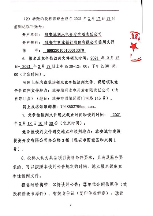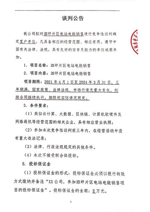 城利水電公司泗坪片區(qū)電站電能銷售競爭性談判公告