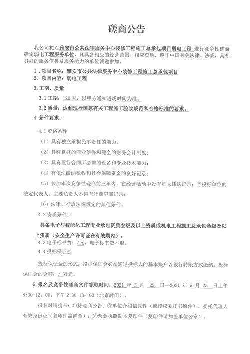 城投建工公司雅安市公共法律服務中心裝修工程施工總承包項目弱電工程競爭性磋商公告