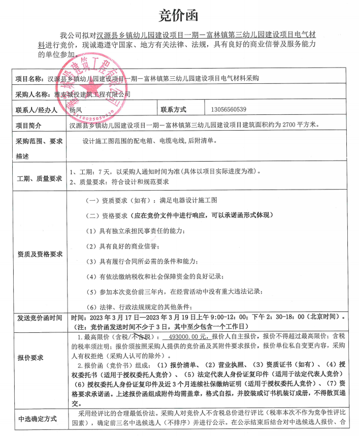 漢源縣鄉(xiāng)鎮(zhèn)幼兒園建設(shè)項(xiàng)目一期一富林鎮(zhèn)第三幼兒園建設(shè)項(xiàng)目電氣材料采購(gòu)競(jìng)價(jià)公告