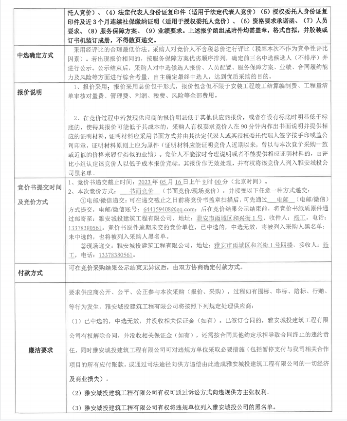 工程咨詢服務(wù)采購清單