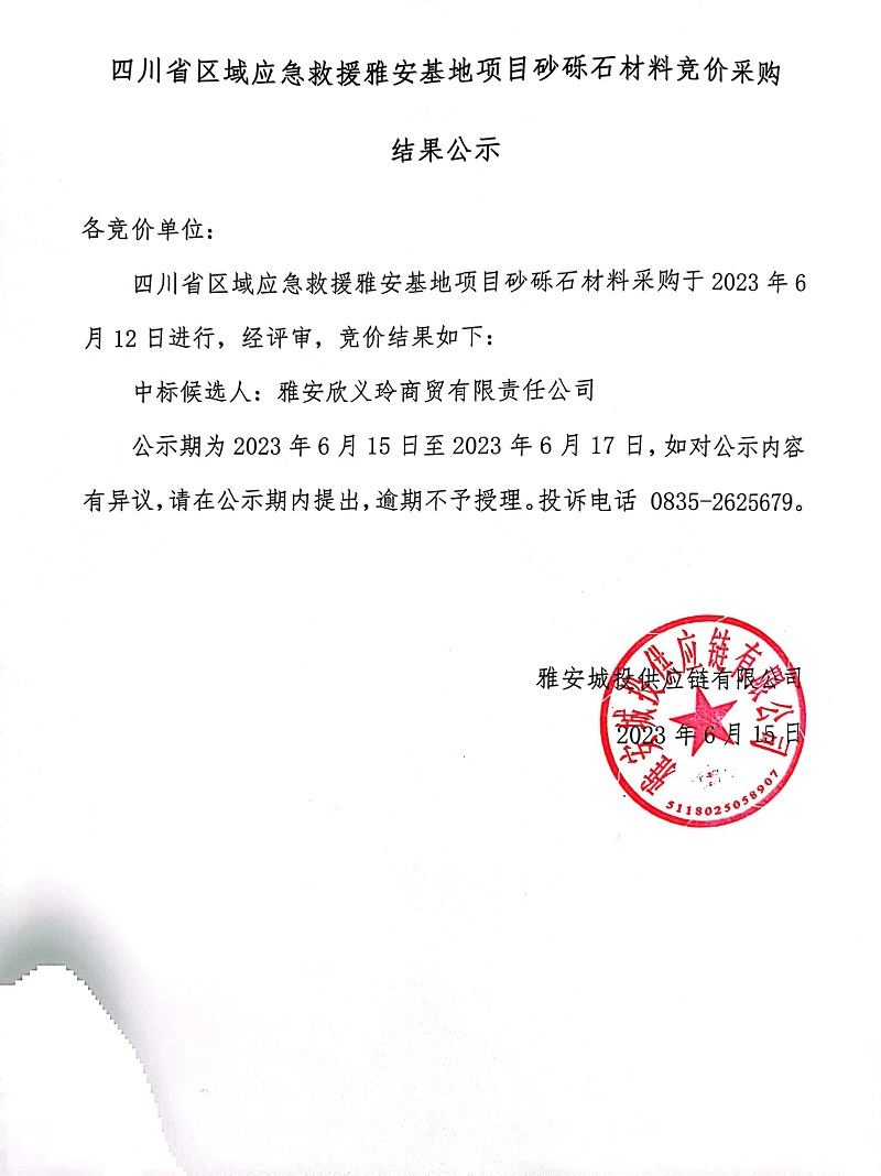四川省區(qū)域應(yīng)急救援雅安基地項目砂礫石材料競價采購結(jié)果公示