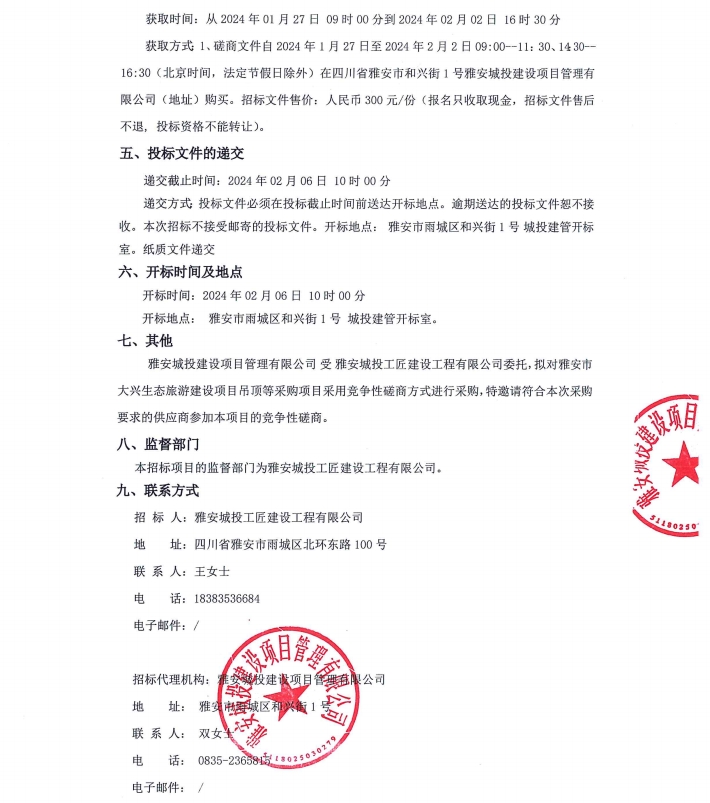 雅安市大興生態(tài)旅游建設(shè)項(xiàng)目吊頂?shù)炔少?gòu)項(xiàng)目公告