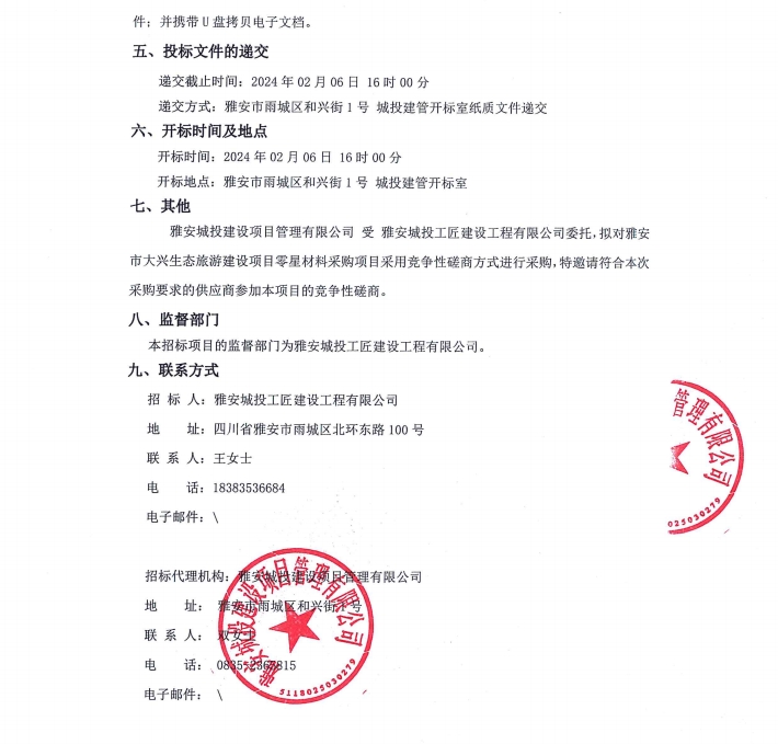 雅安市大興生態(tài)旅游建設(shè)項目零星材料采購項目公告