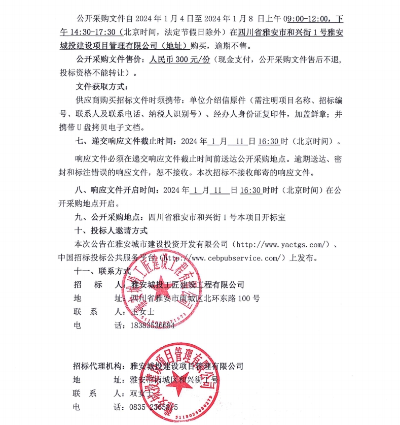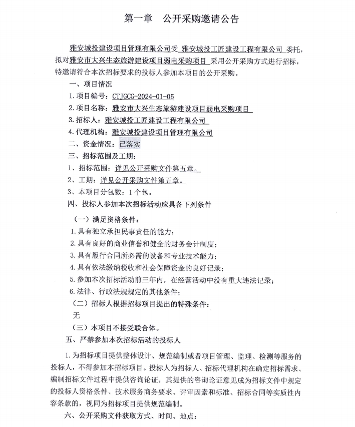 雅安市大興生態(tài)旅游建設(shè)項目弱電采購項目公開采購邀請公告