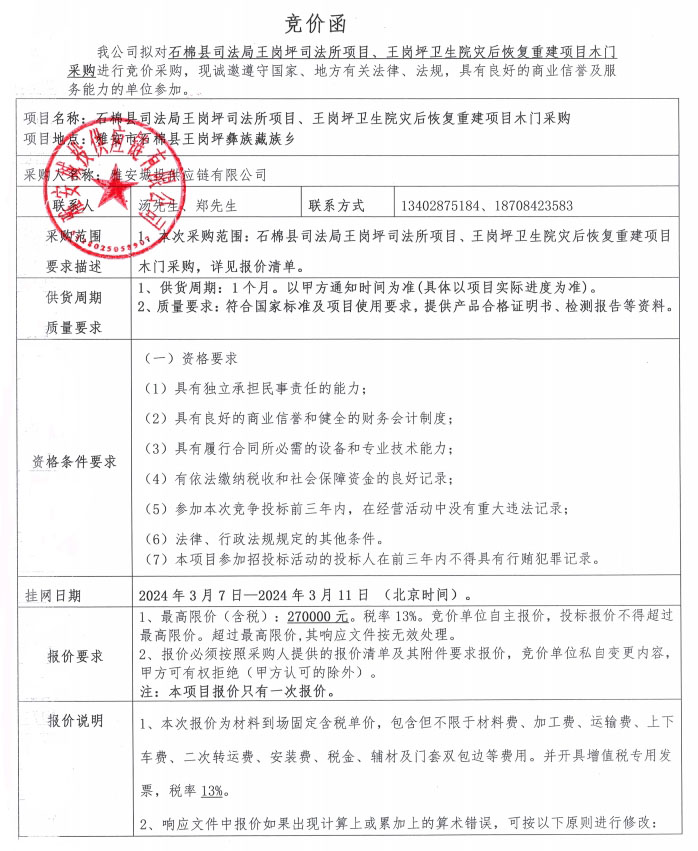 附件1:競價函-石棉縣司法局王崗坪司法所項目、王崗坪衛(wèi)生院災(zāi)后恢復(fù)重建項目木門材料采購