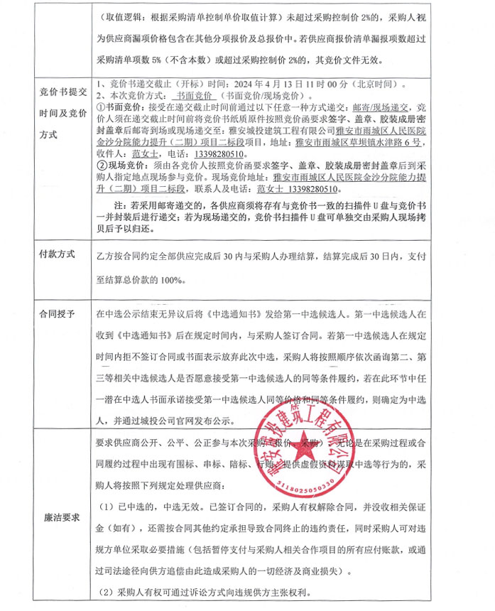 雅安市雨城區(qū)人民醫(yī)院金沙分院能力提升(二期)項(xiàng)目二標(biāo)段零星材料采購(gòu)競(jìng)價(jià)公告
