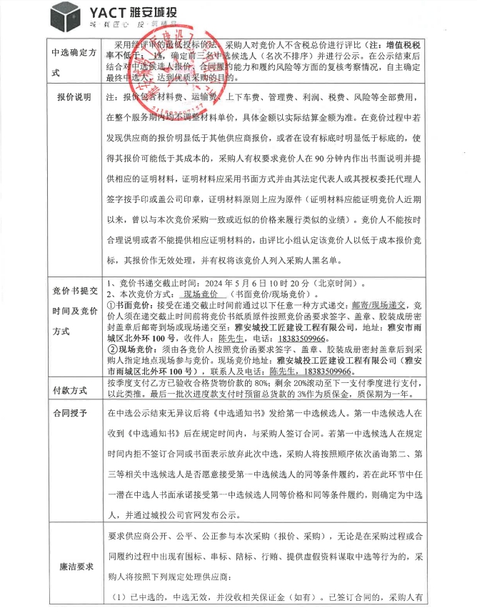 雅安市大興生態(tài)旅游建設項目雅樂匯排煙風管材料采購競價公告