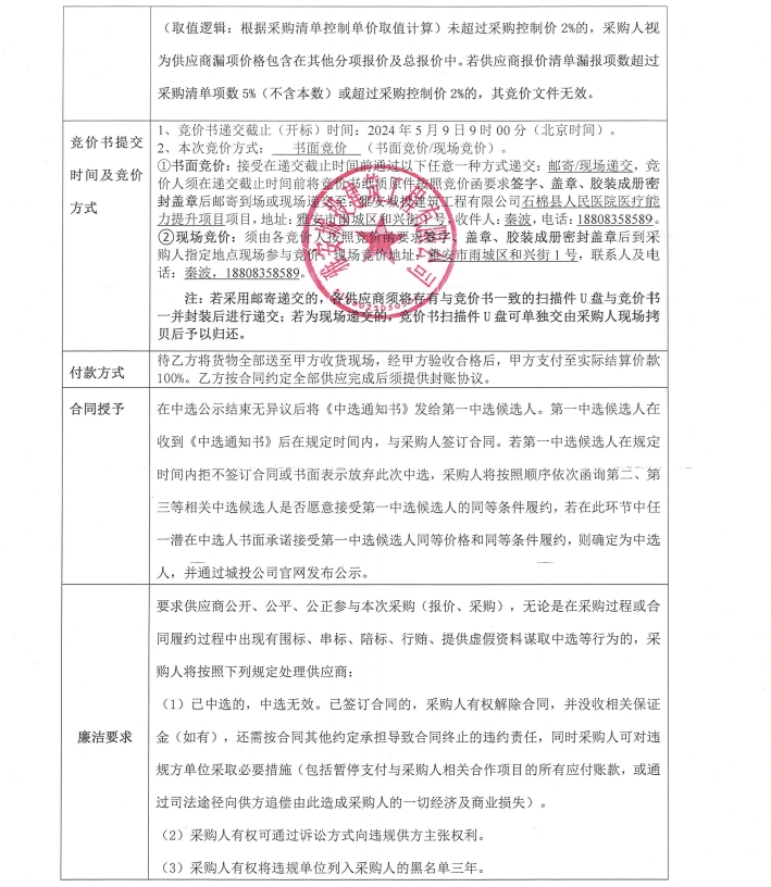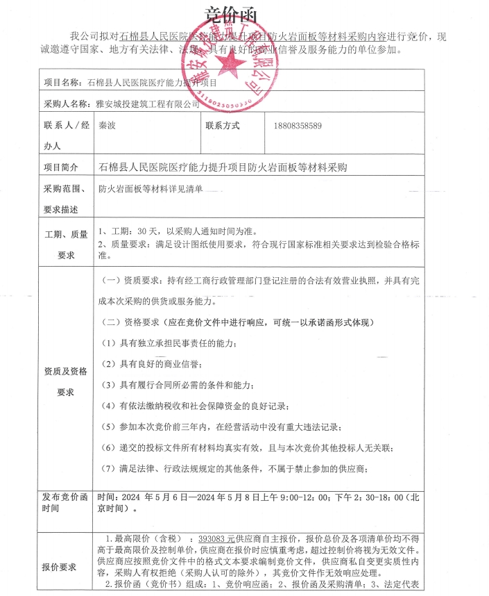 石棉縣人民醫(yī)院醫(yī)療能力提升項(xiàng)目防火巖面板等材料采購內(nèi)容競價(jià)公告