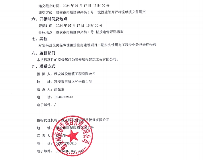 寶興縣靈關(guān)保障性租賃住房建設(shè)項(xiàng)目二期永久性用電工程專業(yè)分包公告