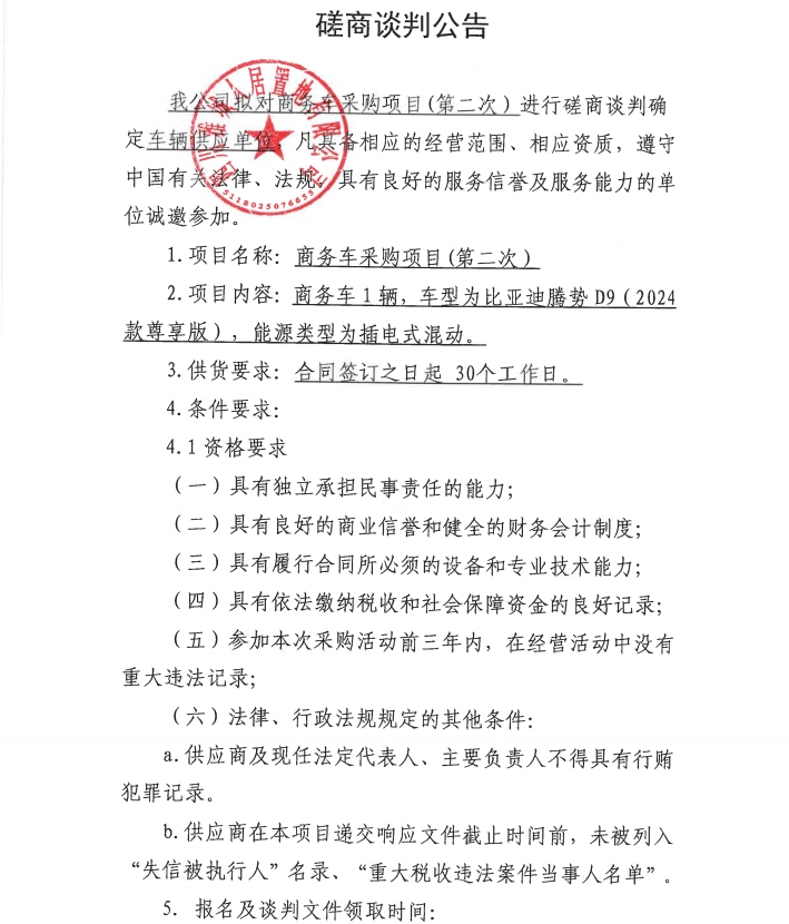 商務(wù)車(chē)采購(gòu)項(xiàng)目(第二次)磋商談判公告