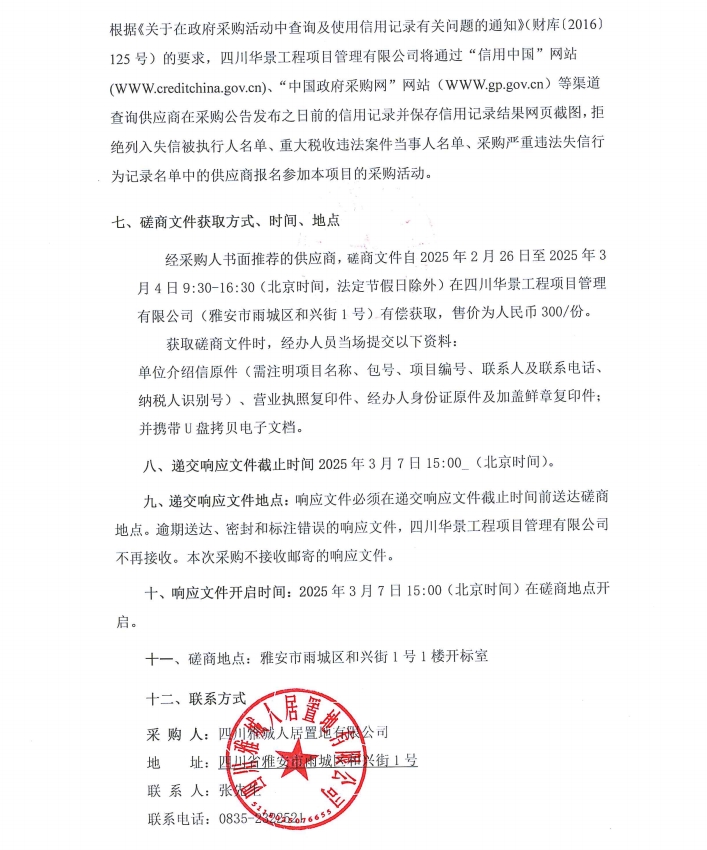 雅州印項(xiàng)目前期物業(yè)服務(wù)公司采購項(xiàng)目磋商邀請