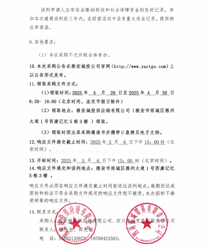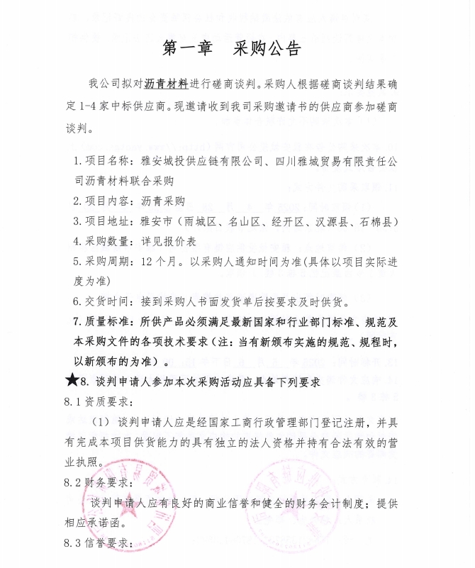 雅安城投供應(yīng)鏈有限公司、四川雅城貿(mào)易有限責(zé)任公司瀝青材料聯(lián)合采購公告