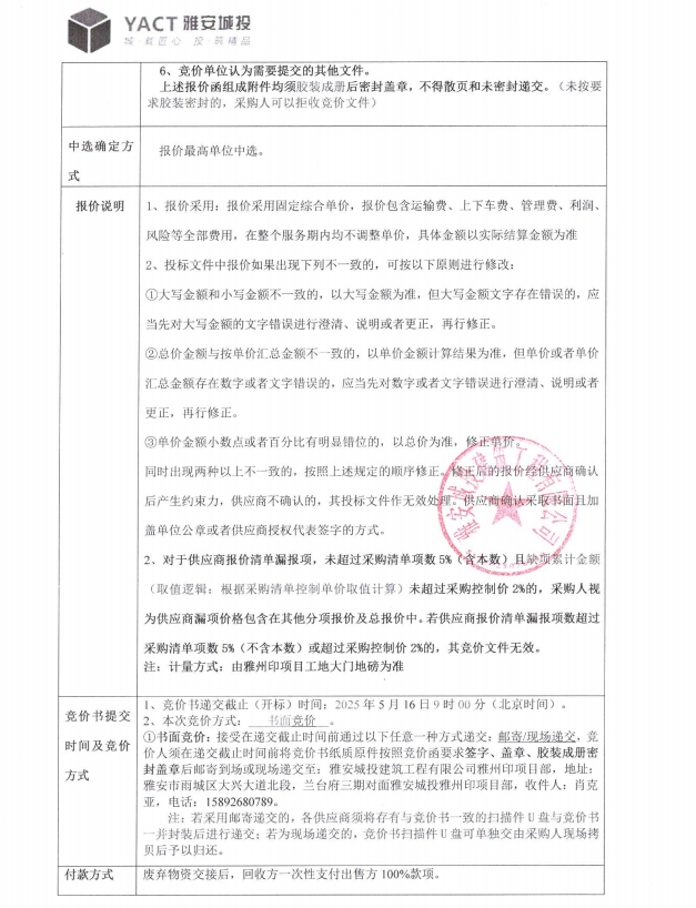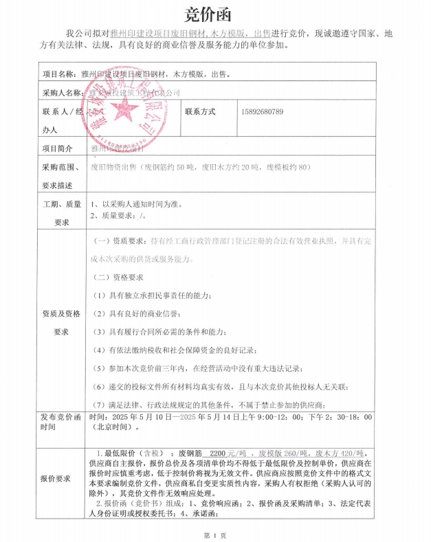 雅州印建設項目廢舊鋼材,木方模版出售競價公告