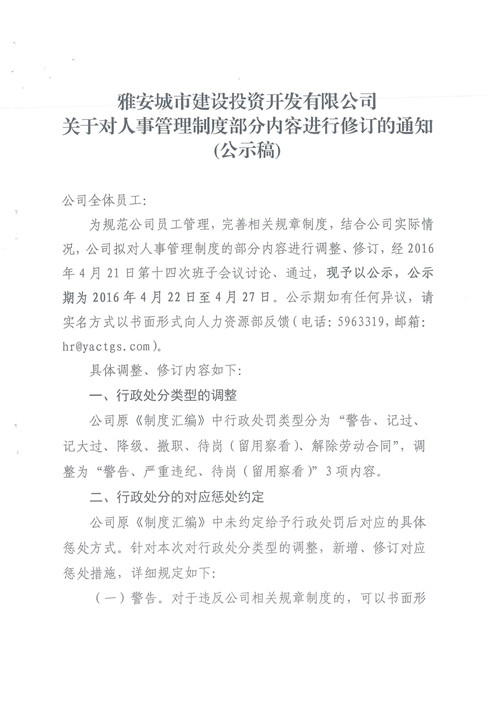 關(guān)于對人事管理制度部分內(nèi)容進行修訂的通知